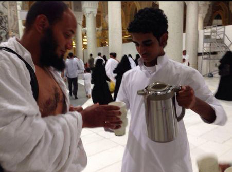 ٨. مشاركة المكتب التعاوني في توزيع الكتيبات الدعوية على الحجاج على طريق الحرمين