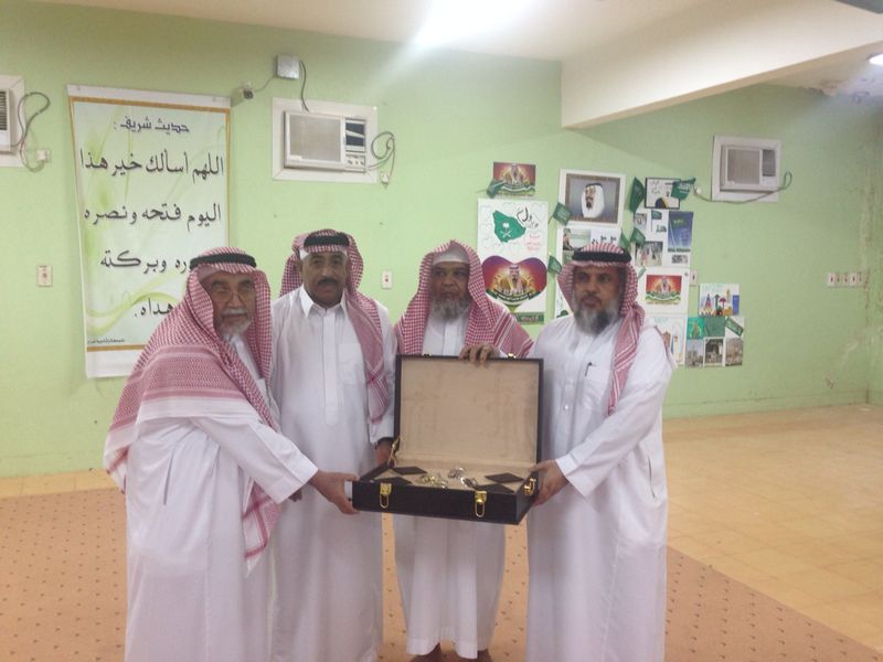 وفي نهاية الحفل قدمت للمحتفى به الهدايا التذكارية من الزملاء بالمدرسة والحضور والطلاب