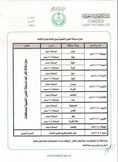وتختتم المسابقة عروضها الشعبية يوم الجمعة الموافق 3 / 4 / 1436هـ بمحافظة القنفذة، على أن يكون السبت 4 / 4 موعداً لإعلان الفائزين بالجوائز خلال الحفل الختامي لفعاليات السوق.