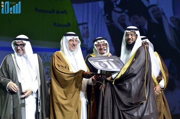 رعى وزير التربية والتعليم الأمير خالد الفيصل مساء اليوم حفل الوفاء وتكريم الفائزين والفائزات بجائزة التربية والتعليم للتميز في دورتها الخامسة، الذي أقامته الوزارة في مركز الملك فهد الثقافي بالرياض، وسلم 121 تربوياً وتربوية دروعاً ومكافآت مالية، فيما ينال 24 فائزاً وفائزة الأوائل جوائز عينية، عبارة عن سيارات (BMW) مقدمة من مجموعة محمد يوسف ناغي للسيارات.