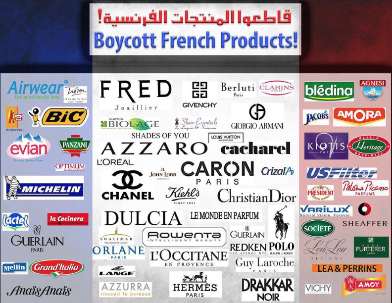 انتصارًا منهم للرسول -صلى الله عليه وسلم- دشّن مغردو “تويتر” حملة لمقاطعة المنتجات الفرنسية، والتوجه للبدائل، بعد حملة السخرية والاستهزاء لنبي الإسلام، التي تستمر فيها صحيفة “شارلي إبدو” الفرنسية، على أن تبدأ الحملة الإثنين (19 يناير 2015).