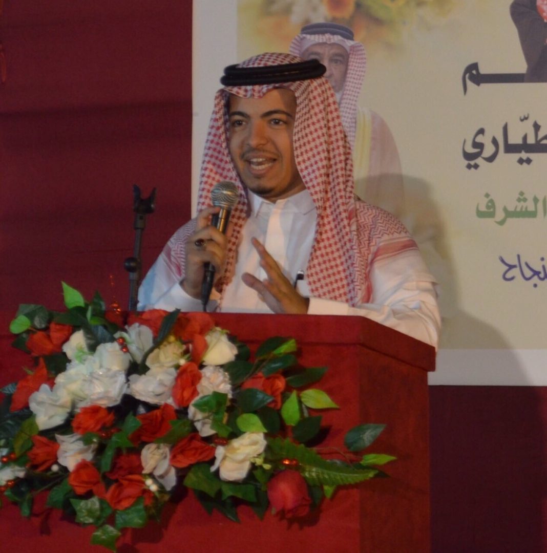 حيثُ بدأ الحفل الخطابي بمقدمة للمتميز أحمد بن ناهر الطياري، وبعدها آيات عطرة من الذكر الحكيم تلاها الشاب فراس بن أحمد الطياري، ومن ثم ألقى سعادة وكيل كلية إدارة الأعمال بجامعة طيبة بالمدينة المنورة الدكتور عبدالله بن محمد الطياري كلمة ترحيبية بالحضور والضيوف الكرام سائلاً المولى أن يُعافي ويُشافي ويحفظ في هذا العهد الزاهر باني نهضة هذا الوطن العظيم خادم الحرمين الشريفين الملك عبُد الله بن عبد العزيز، وسمو ولي عهده الأمين، وسمو ولي ولي العهد، عقب ذلك ألقى سعادة مدير الإدارة المالية بإدارة تعليم المخواة الأستاذ باسم بن عبدالله الطياري كلمة بالنيابة عن والد المحتفى به الأستاذ عبدالله بن ثلاب الطياري، ثم ألقى سعادة مدير مركز صحي الطلعة الأستاذ حبيب بن محمد الحرشني كلمة منسوبي المركز، بعد ذلك كلمة لضيف الحفل المحتفى به سعادة الدكتور عابد الطياري شكر فيها كل من سانده بمسيرتة العلمية، كما شكر ممثل آل النمازات الأستاذ ناهر بن عبدالحافظ الطياري وجميع الحضورعلى مبادرتهم الكريمة، ثم توالت فقرات الحفل والتي اشتملت على مشاركة شعرية للشاعر طاهر بن عطية الطياري، وتشرف ابنه الأستاذ عبالمنعم بن طاهر الطياري بإلقائها بالنيابة، وكذلك مشاركة للشاعر الشيخ عطا الله الغانمي حيثُ ألقاها بالنيابة الشاب محمد بن ناهر الطياري، كما استمتع الجميع بقصيدة للشاعر الأستاذ رضا بن حبيب الطياري، وأيضاً شهد الحفل إحياء للقصائد الشعرية حيثُ شارك الشيخ حميد بن عبدالحميد الطياري، والشيخ بركة بن عبيد الطياري، ثم مشاركة زملاء المحتفى به لكل من الدكتور حمزة المغربي والدكتور إسماعيل خشوري ثم تخلل الحفل فقرة بعنوان أنشودة الحفل للشاب وسيم بن صالح الطياري، وبعد ذلك تُرك المجال للحضور لمن لديه مداخله أو مشاركة للتعيبر في حق المحتفى به. حيث شارك الأستاذ عبد العالي طاهر الطياري بقصيدة نالت استحسان الجميع كما ارتجل الأستاذ أسامة حصيني الطياري زميل المحتفى به في المراحل التعليمية كلمة نالت رضا الجميع، وقد حضر الحفل عدد من أعيان المحافظة ومنهم عم المحتفى به الأستاذ عبيد عابد الصعيدي، وعدد من أبناء أسرة الطيار بخليص وأرحامهم وفي مقدمتهم الشيخ عبدالغني بن عطية الله الطياري، بالإضافة إلى زملاء ومعارف المحتفى به.