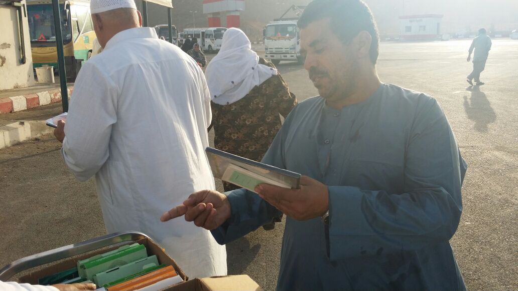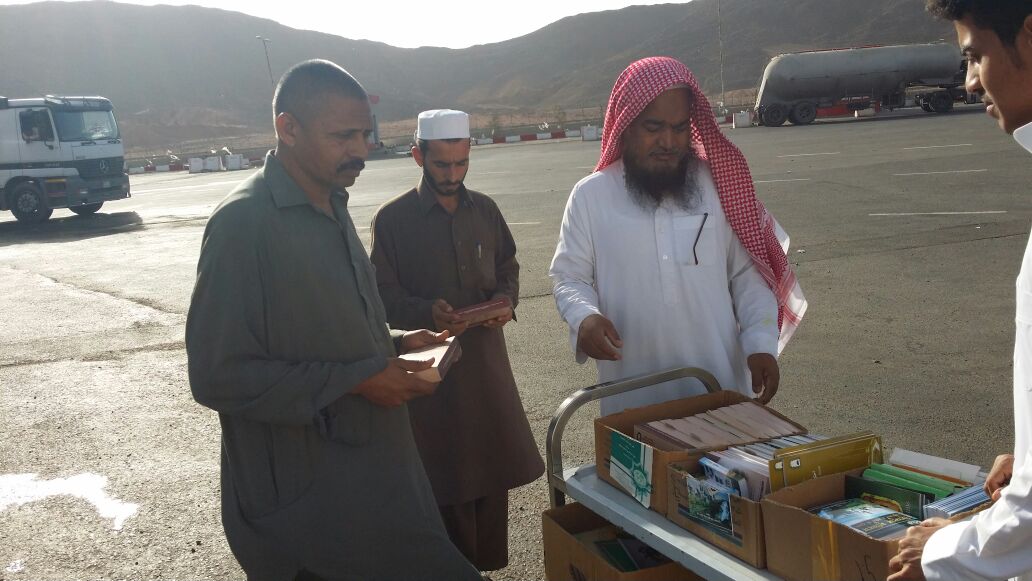 حيث يقوم المكتب بإعداد الحقائب الدعوية وتجهيزها ثم يبادر إلى الباصات وسيارات الزوار والمعتمرين أثناء توقفها للتزود بالوقود أو لأداء الصلاة ويقوم بتوزيعها على الركاب