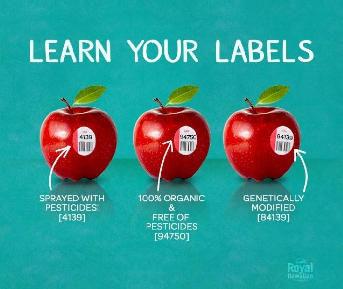 معظم الفواكه والخضراوات في الأسواق عليها ملصقات صغيرة نزيلها غالباً بعد شراء ما نحتاجه، وأغلب الناس لا يعيرون اهتماماً للمعلومات التي عليها، وما يجهله أغلب الأفراد أن على الملصقات هذه معلومات مهمة، وأن هذه الأرقام لا تدل عن سعر المنتج بل على جودته. وهذه الأرقام الموجودة على الملصقات تدل على هوية المنتج، توضح نوعه ومحتواه وماذا قدم له من الأسمدة.