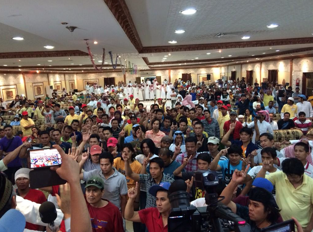 صحيفة غراس الإلكترونية > الأخبار المحلية > تعاوني الجموم يحتفي بإسلام ٩٠ من الجالية الفلبينية والنيبالية تعاوني الجموم يحتفي بإسلام ٩٠ من الجالية الفلبينية والنيبالية الكاتب: متابعات 07 مارس, 2015م 3 10883 بحضور الشيخ سالم بن سعود المعبدي مدير المكتب التعاوني للدعوة والإرشاء وتوعية الجاليات بمحافظة الجموم احتفل المكتب مساء أمس (الجمعة) بإشهار ٩٠ رجلاً من الجنسية الفلبينية والنيبالية إسلامهم وذلك بقاعة ليلتي بحداء وسط جمع كبير من عمال الشركات والمؤوسسات بالمحافظة.