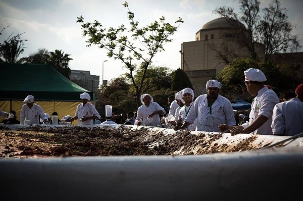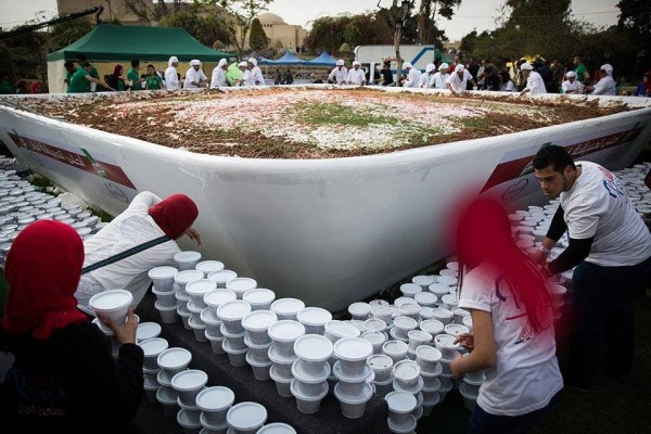 وهذا ماحرص عليه المشرفين على الحدث، وقد وصل وزن الطبق إلى 4 ونص طن بمساحة تبلغ 100 متر مربع، وسوف تتولى جمعية رسالة الخيرية “غير حكومية” تقسيم طبق الفول الضخم إلى علب بلاستيكية صغيرة كي تبدأ في توزيعها على “7500 ” أسرة فقيرة داخل وخارج محافظة القاهرة.
