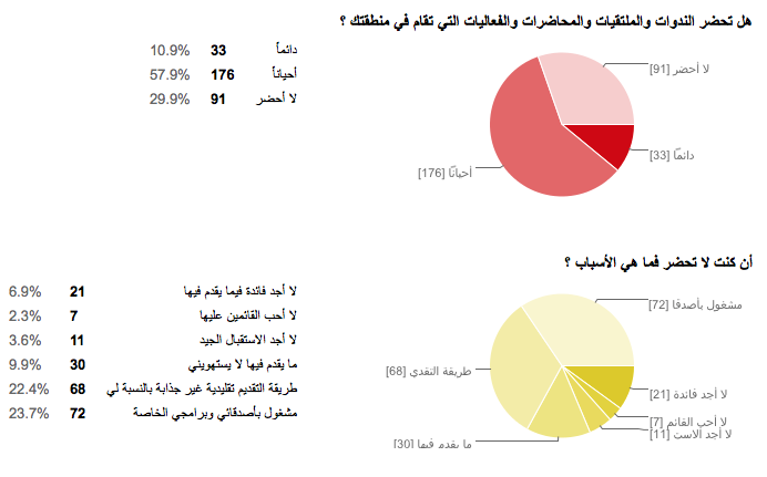 وفي الختام لا يسعنا سوى تقديم خالص الشكر والتقدير لكل من شارك في هذا الاستبيان وكتب وأبدى وجهة نظره واقتراحاته ونحن بدورنا نطرح ما سبق أمام المسؤولين والتربويين والقائمين على الملتقيات والفعاليات والأنشطة لكي يستشفوا منها ما يساعدهم على تطوير برامجهم و يجذب المجتمع عامة والشباب خاصة للحضور والمشاركة بفعالية. وفق الله الجميع لما فيه الخير والصلاح.