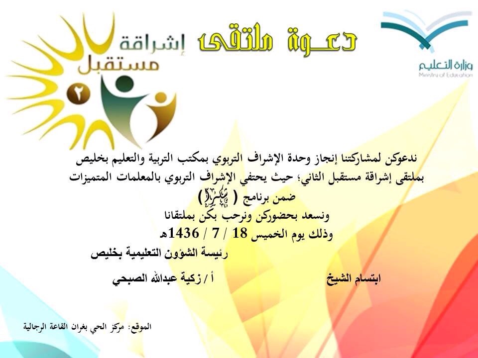 والجدير ذكره أن هذين البرنامجين (الملتقى وشكراً) تنظمها وحدة الأشراف التربوي بمكتب خليص (بنات) ، والتكريم جاء بمشاركة مؤسسات أهلية واجتماعية تمثلت في مجموعة البشري الطبية ، وجمعية البر بخليص وقرطاسية المملكة وباستضافة من مركز أحياء غران .