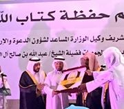 كرمت الجمعية الخيرية لتحفيظ القرآن الكريم بمحافظة الجموم أمس 42 حافظاً ، وذلك برعاية المحافظ هليل بن سالم المطرفي ، وبحضور وكيل الوزارة المساعد لشؤون الدعوة الشيخ عبد الله بن صالح آل الشيخ ، ومديري ورؤساء الإدارات الحكومية والخيرية ، ووجهاء وأعيان المحافظة ، وجمع من أولياء أمور الطلاب.