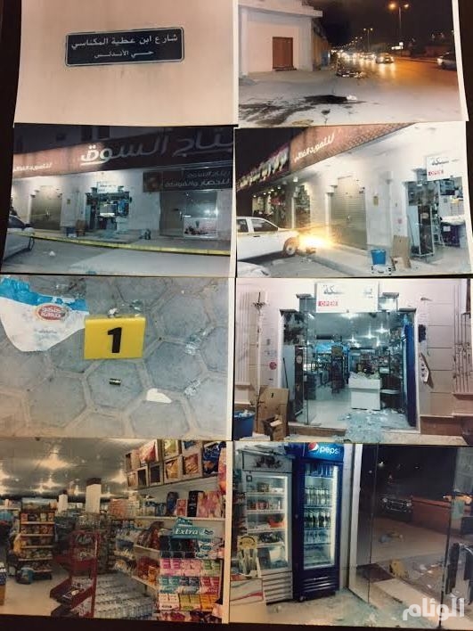 وكان مركز شرطة الروضة قد تلقى بلاغًا من أحد المواطنين عن قيام أربعة أشخاص سعوديي الجنسية يستقلون سيارة يوكن سوداء اللون بإطلاق النار على واجهة محل تجاري وتهديد العامل وسرقة مبلغ (3000) ريال من آلة المحاسبة والهرب .