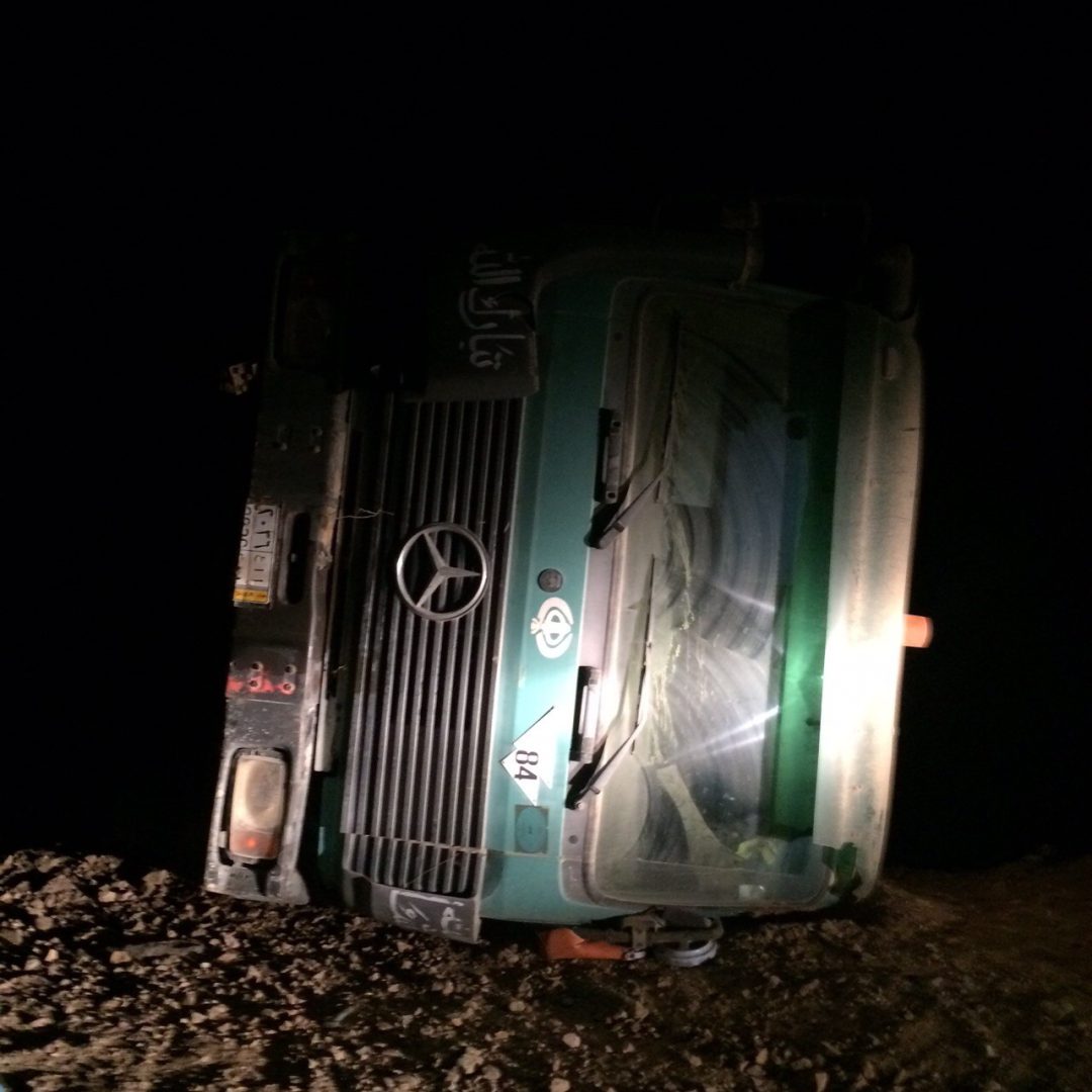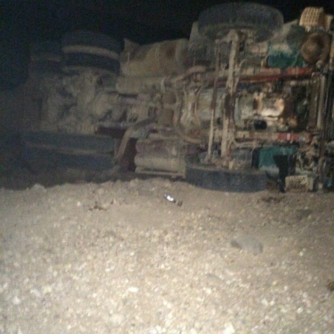 تسبب تسرب خلطة خرسانية من خلاطة كانت متوجهة لمركز البرزة الى انقلاب صهريج للمياه كان هو الآخر متجها الى أحد تلك الأحياء هناك. الحادث وقع مساء أمس الاربعاء 23 شعبان على طريق الجضع حينما تفاجأ سائق “الوايت” بكمية الخرسانة السائلة على الطريق التي أدت إلى فقدان التوازن وانقلاب الصهريج.