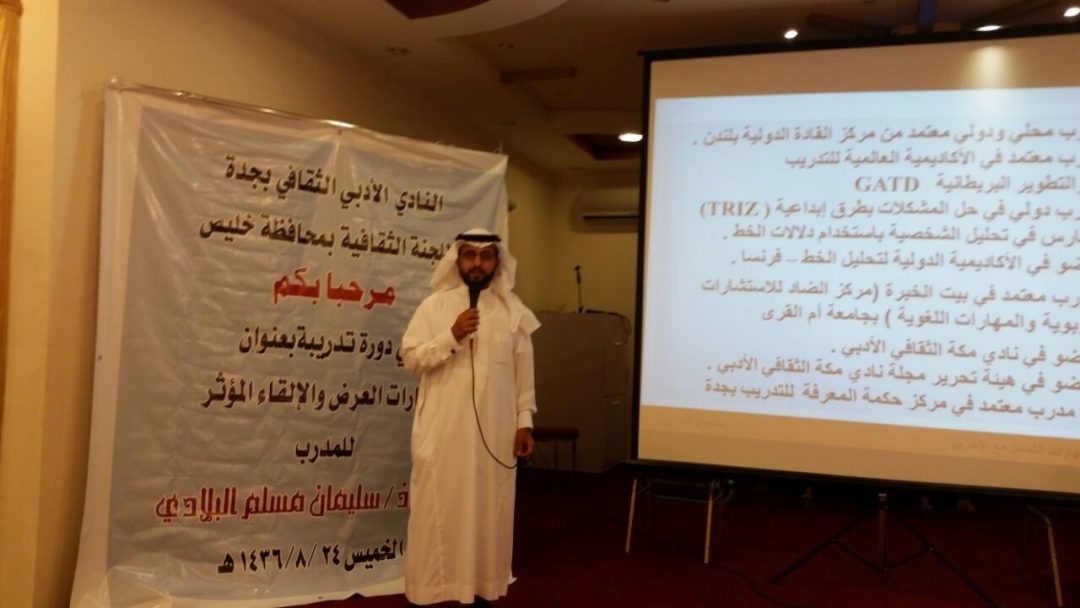 نفذت اللجنة الثقافية بمحافظة خليص مساء يوم أمس الخميس 24 من شهر شعبان بقاعة الرواد بحي الحميرات ، دورة تدريبية بعنوان : “مهارات العرض والإلقاء المؤثر”.