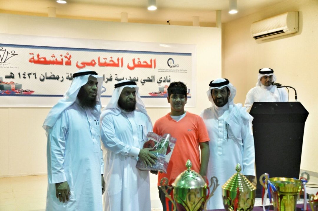 برعاية مدير مكتب التعليم بمحافظة خليص الأستاذ أحمد مهنا الصحفي ، ونائب الأمين العام لجمعية مراكز أحياء خليص الأستاذ أحمد عناية الله الصحفي ، أُختتم مساء أمس الإثنين الحفل الختامي لأنشطة “نادي الحي“ لعام 1436 هجري ، وذلك بمدرسة غران الثانوية والمتوسطة ، وكان الحفل من تقديم الأستاذ/ عصام المرامحي .