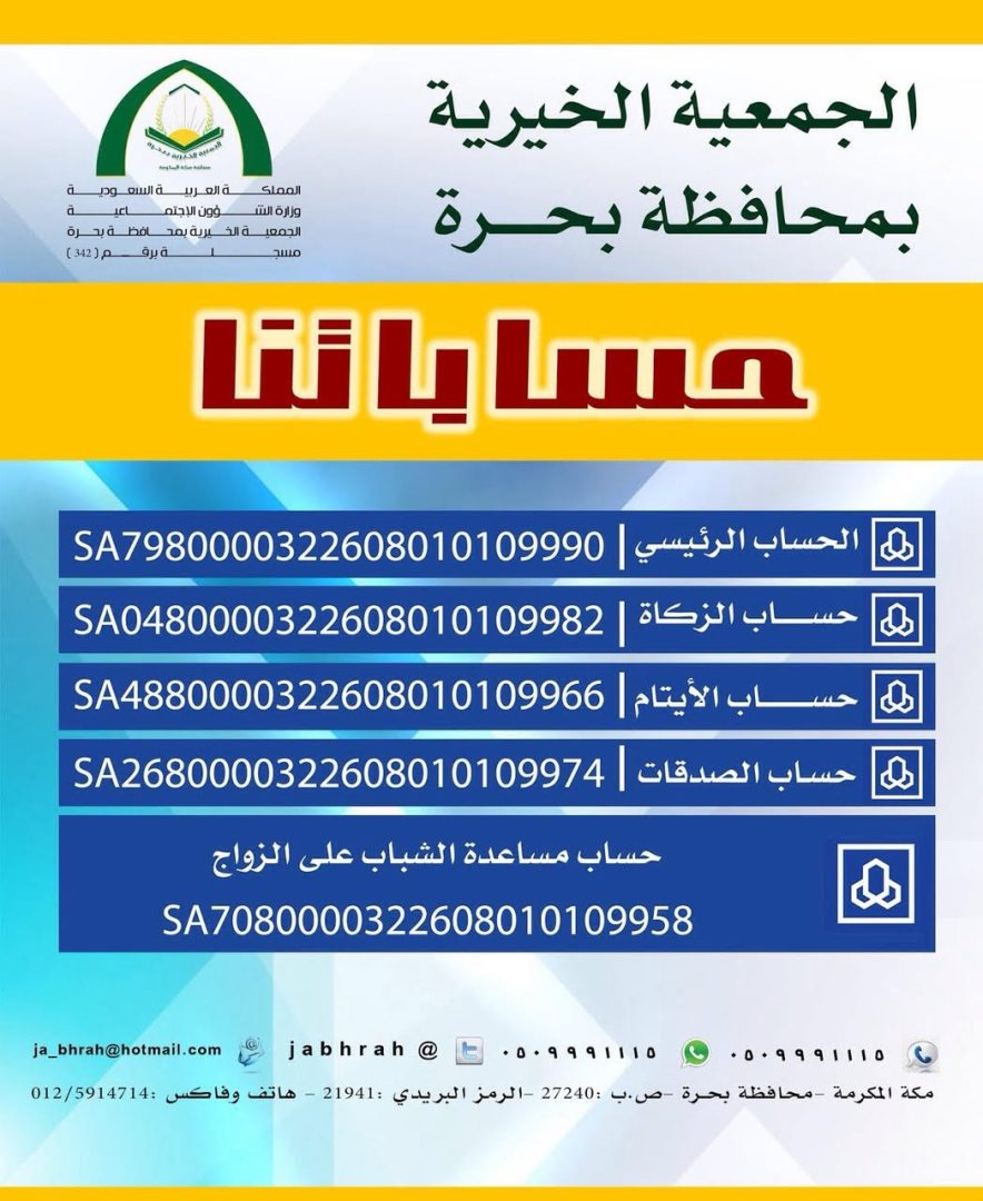 وأوضح رئيس جمعية بحرة عبدالله الدوسري ، أن الجمعية تستعد لتوزيع كسوة العيد لشريحة كبيرة من مستفيديها من بينهم أيتام وأرامل وفقراء ، مضيفًا أن الجمعية بحاجة إلى دعم ومساهمة أهل الخير في تغطية باقي تكاليف مشروع الإفطار ومشروع هدية العيد ، ومشاريعها الخيرية الأخرى لتتمكن من الوفاء بالتزاماتها وتلبية متطلبات الفقراء.