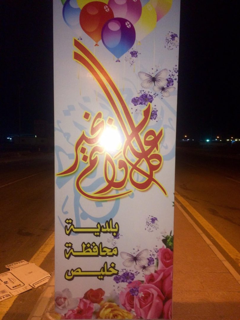 شرعت بلدية محافظة خليص هذا العام ومنذ وقت مبكر في وضع لوحات وبانارات إعلانية ، تهنئ بها مجتمع خليص بالعيد السعيد أعاده الله علينا وعليكم باليمن والبركات .