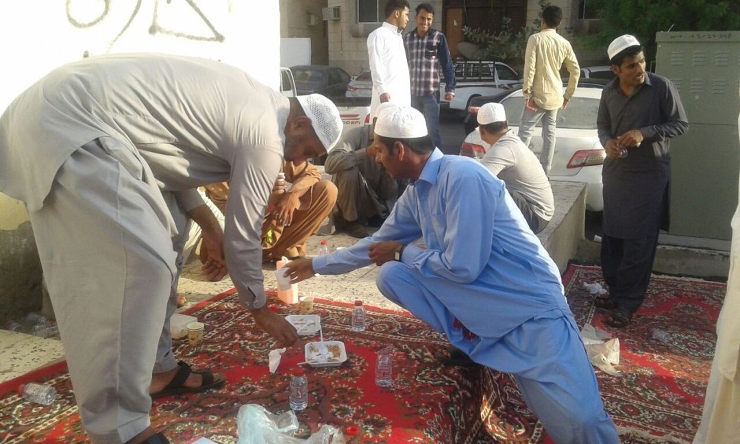 بحضور عدد من جماعة مسجد الحسين “بحي المغاربة“ يتقدمهم العقيد مشعل المغربي ، والعقيد حميد المغربي ، والدكتور عبدالرحمن المغربي ، والأستاذ عبدالقادر المغربي ، والأستاذ عدنان المغربي رئيس مركز الحي ، والأستاذ تركي المغربي ، والأستاذ أيمن المغربي ، وجمع غفير من أهالي الحي ، حيث أقاموا “فطرة العيد” الجماعية تحت إشراف مركز الحي ومركز التسامح للنشاط الإجتماعي ، كما شرف الإفطار الشيخ عبدالواحد بن رجاء المغربي ، والأستاذ عبد العليم الشيخ ، والمهندس معتز الشيخ ، وشاركهم البعض من الأخوة المقيمين من أهالي الحي .