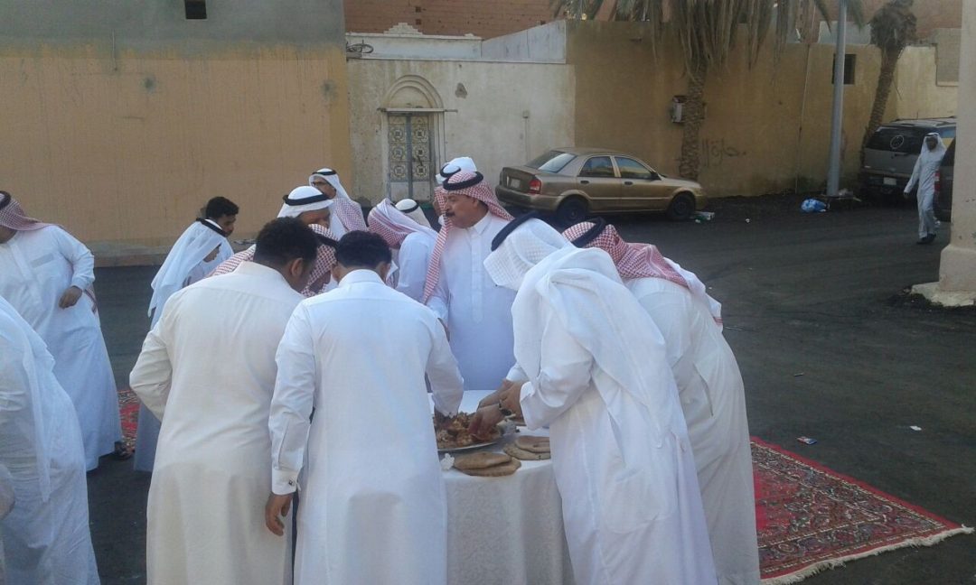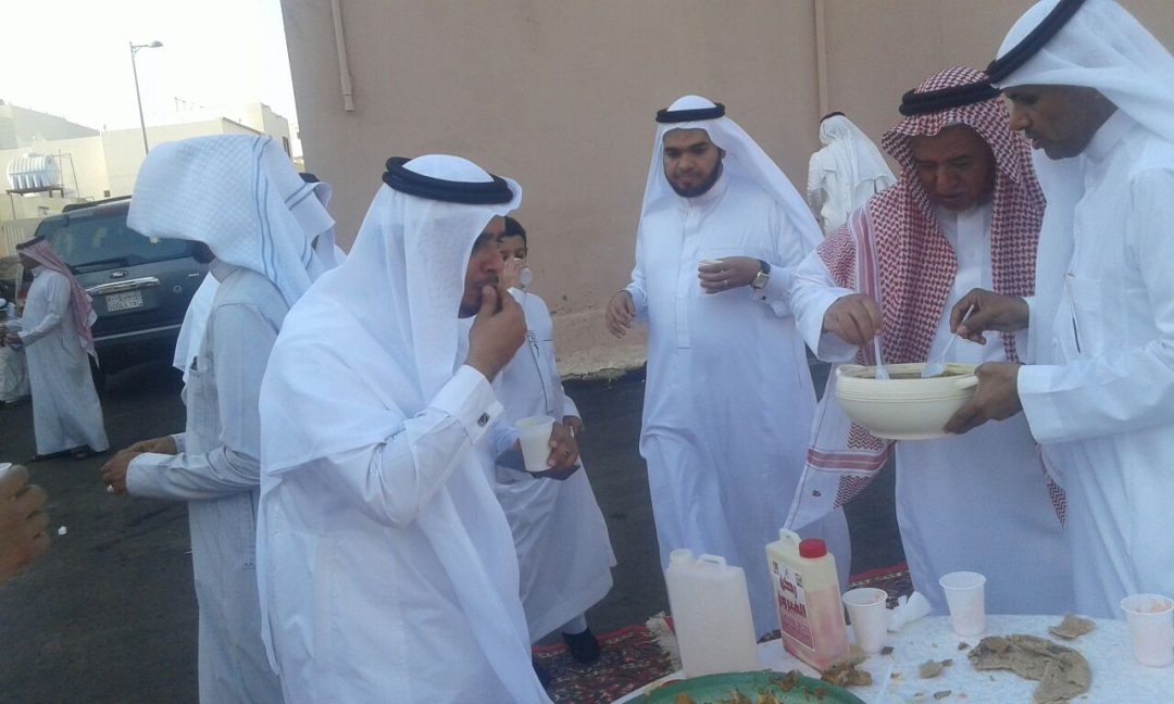 وقد إلتقى الجميع وتناولوا فطرة العيد التي أُعدت لهم من الأكلات التراثية ، حيث شارك في إعدادها جيران المسجد ، وتبادل الجميع بعدها التهنئه بالعيد السعيد ، والدعاء بأن يتقبل الله من الجميع الصيام والقيام وصالح الأعمال .