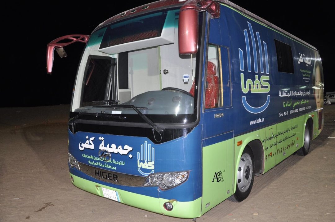 كما كان لحضور معرض “كفى” الإحترافي وتواجده بالمركز كبير الأثر ، حيث يعد هذا المعرض من أهم الوسائل التي نجحت جمعية كفى في إستخدامه للتوعية والتحذير من أضرار التدخين ، وقد تنقل الشيخ نايف الصحفي ببعض الشباب داخل الباص واستعرض معهم محتويات المعرض وأنشطته الهادفه ومنها في المقام الأول التوقف والإمتناع عن التدخين .
