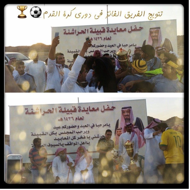 أما “رابع أيام العيد السعيد” توج الفريق الفائز في دوري كرة القدم فريق المحاشير ، حيث قدم له الكأس والميداليات الذهبية ، وتكريم المركز الثاني فريق “ملح الطيارة” وتسليم الميداليات الفضية .