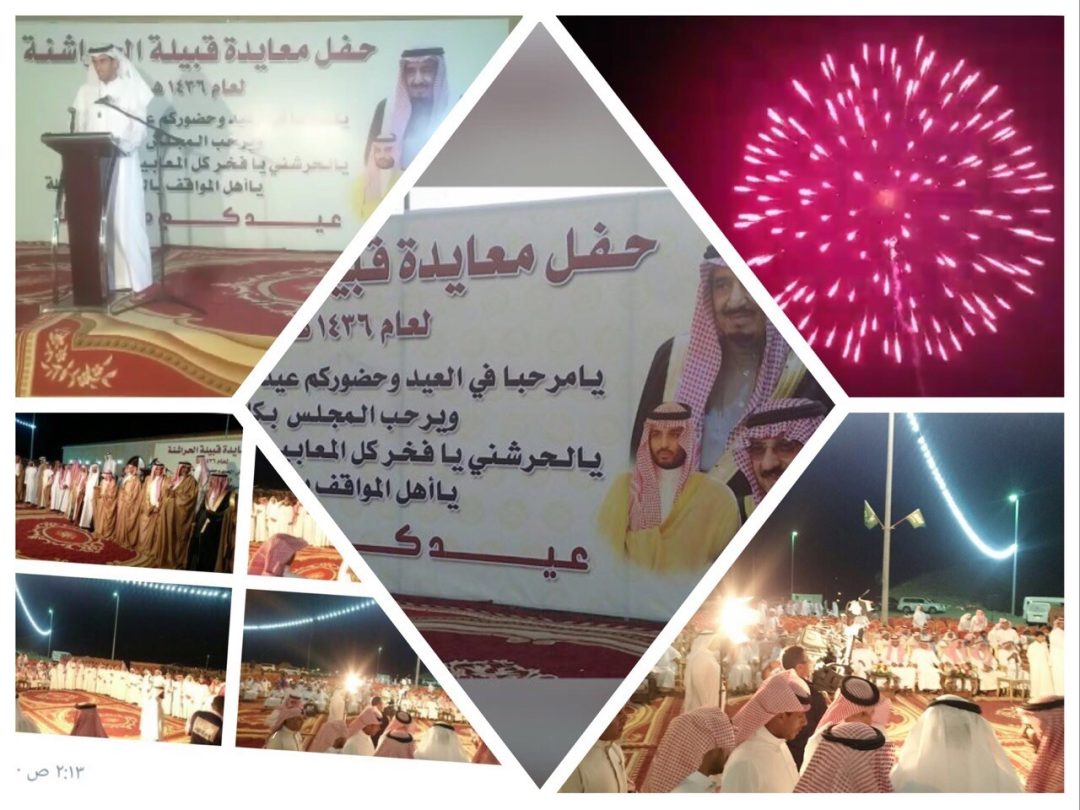 إنطلقت بادرة دعوة تشريف من أهالي حي “ملح الطيارة” للأحياء المجاورة ، فلبوا دعوتهم وشرفوهم بالحضور الكبير المنقطع النظير ، حيث لم يتغيب من أبناء القبيلة الكبير والصغير ، لتكون ثاني أيام العيد ليلة تتكرر في كل عام يتقابل فيها “الحراشنة” للمعايدة …. وليكون العيد شاهداً في كل عام على روح التعارف والتآلف والتكاتف .