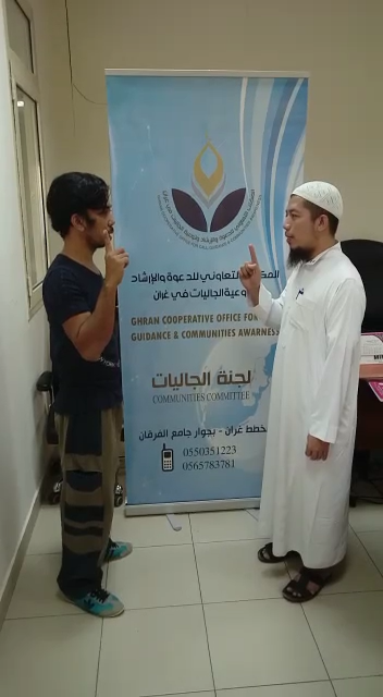 إعتنق أربعة عمال من الجنسية الفلبينية الإسلام مساء أمس ونطقوا الشهادتين على يد الداعية الفلبيني الشيخ إسماعيل (الداعية بلجنة توعية الجاليات بالمكتب التعاوني للدعوة والإرشاد وتوعية الجاليات في غران). الذي شرح لهم محاسن الدين الإسلامي والعقيدة الصحيحة وأجاب على أسئلتهم واستفساراتهم.