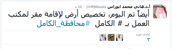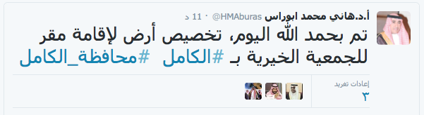 صحيفة غراس الإلكترونية > الأخبار المحلية > “أبورأس” يعلن تخصيص قطعتي أرض لجمعية البر ومكتب العمل بـ “الكامل” “أبورأس” يعلن تخصيص قطعتي أرض لجمعية البر ومكتب العمل بـ “الكامل” الكاتب: قسم المتابعة والرصد 18 أكتوبر, 2015م 1 8746 أعلن قبل قليل معالي أمين محافظة جدة الدكتور هاني أبورأس عن تخصيص أرض لإقامة مقر لمكتب العمل ، وتخصيص قطعة أخرى لإقامة مقر لجمعية البر الخيرية بمحافظة الكامل . جاء ذلك عبر الحساب الشخصي لمعالي الأمين “أبو رأس” على موقع التواصل الإجتماعي “تويتر” .