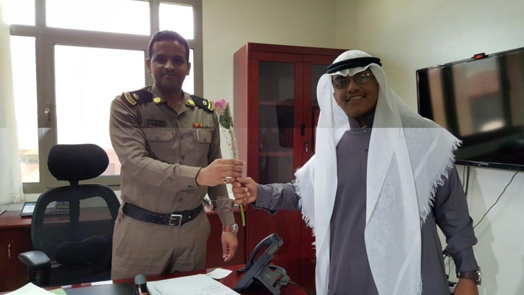 أُخذت جولة على أقسام إدارة المرور لتقديم باقة الورد لكل فرد من رجال المرور ، وتم أخذ الصور التذكارية معهم .