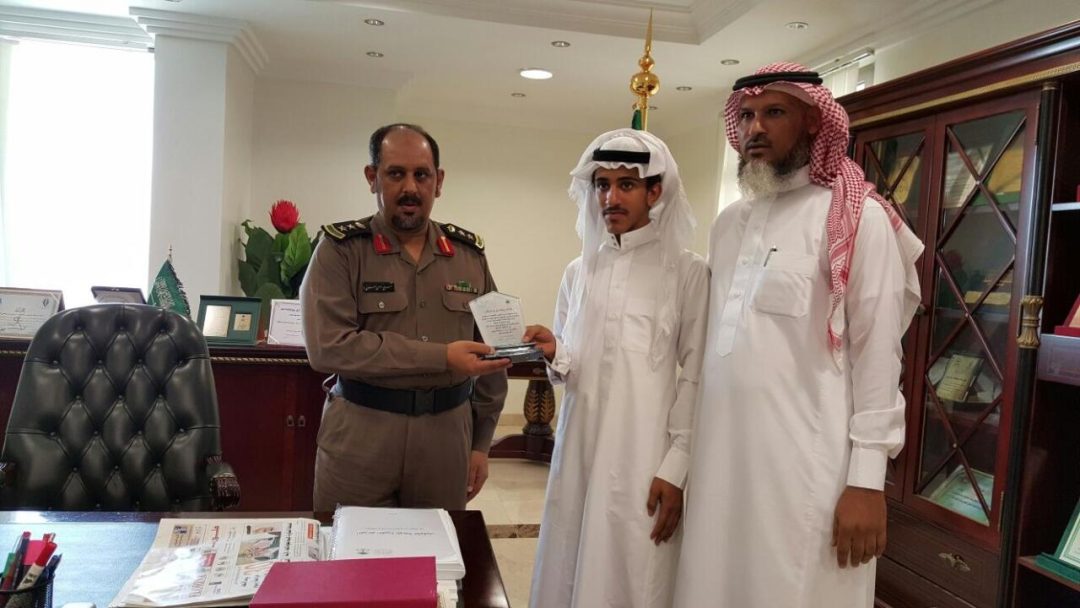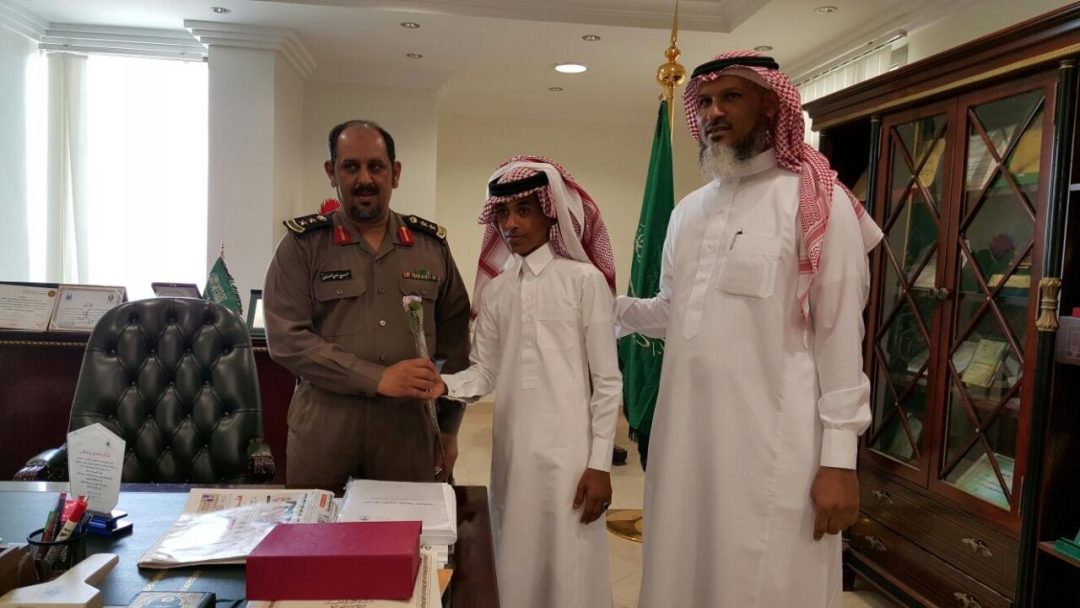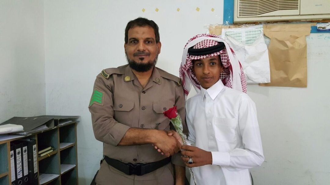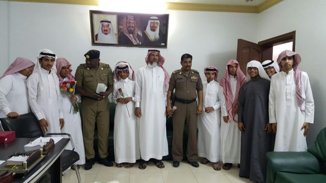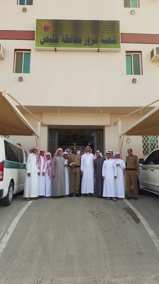 عقب ذلك إنتقل البرنامج إلى الخارج ، وذلك بزيارة إدارة شرطة محافظة خليص ، حيث إستقبل العقيد منيع راضي العتيبي رائد النشاط اﻷستاذ فيصل نافع الصبحي ومجموعة من طﻻب المدرسة ، وقد بين رائد النشاط الهدف من البرنامج وهو تقديم لمسة وفاء لرجال الأمن بكلمة “شكراً” ، وتم تقديم درع الشكر لهم .