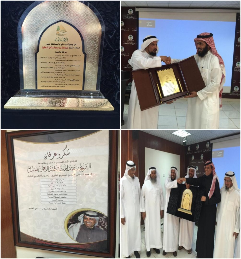 قام وفد من جمعية البر الخيرية بمحافظة خليص برئاسة رئيس مجلس الإدارة الدكتور حمزة المغربي وعدد من أعضاء مجلس الإدارة والموظفين بزيارة للشيخ عبدالله العقيل بمدينة حرمة بمحافظة المجمعة ، حيث كان الشيخ “العقيل” في مقدمة المستقبلين و يرافقه الأستاذ فهد المدلج رئيس النادي الفيصلي .
