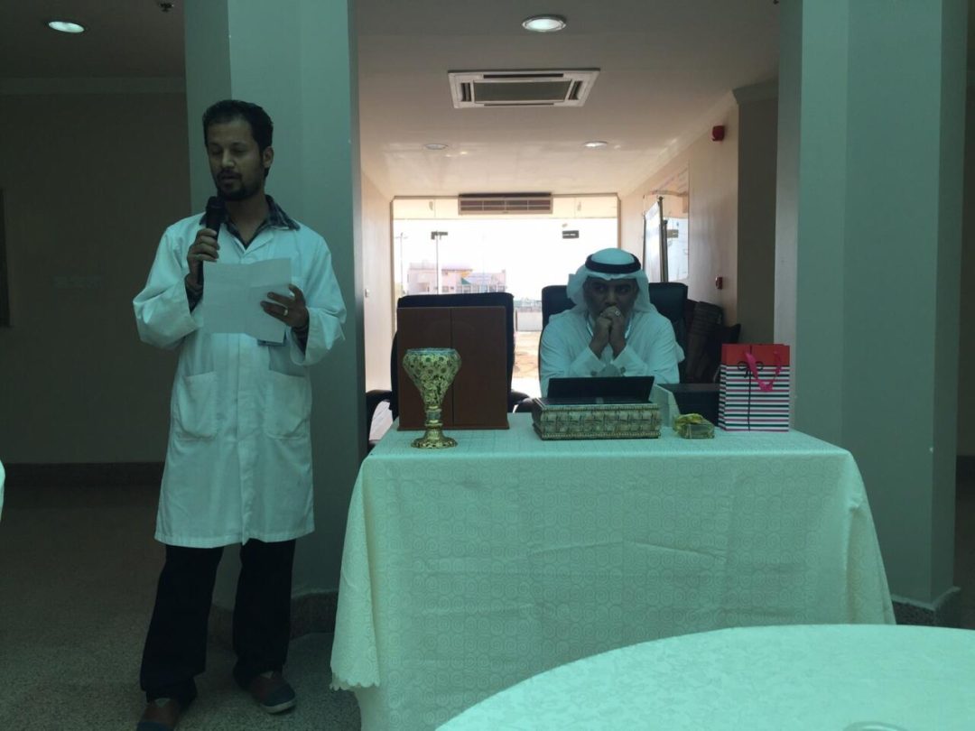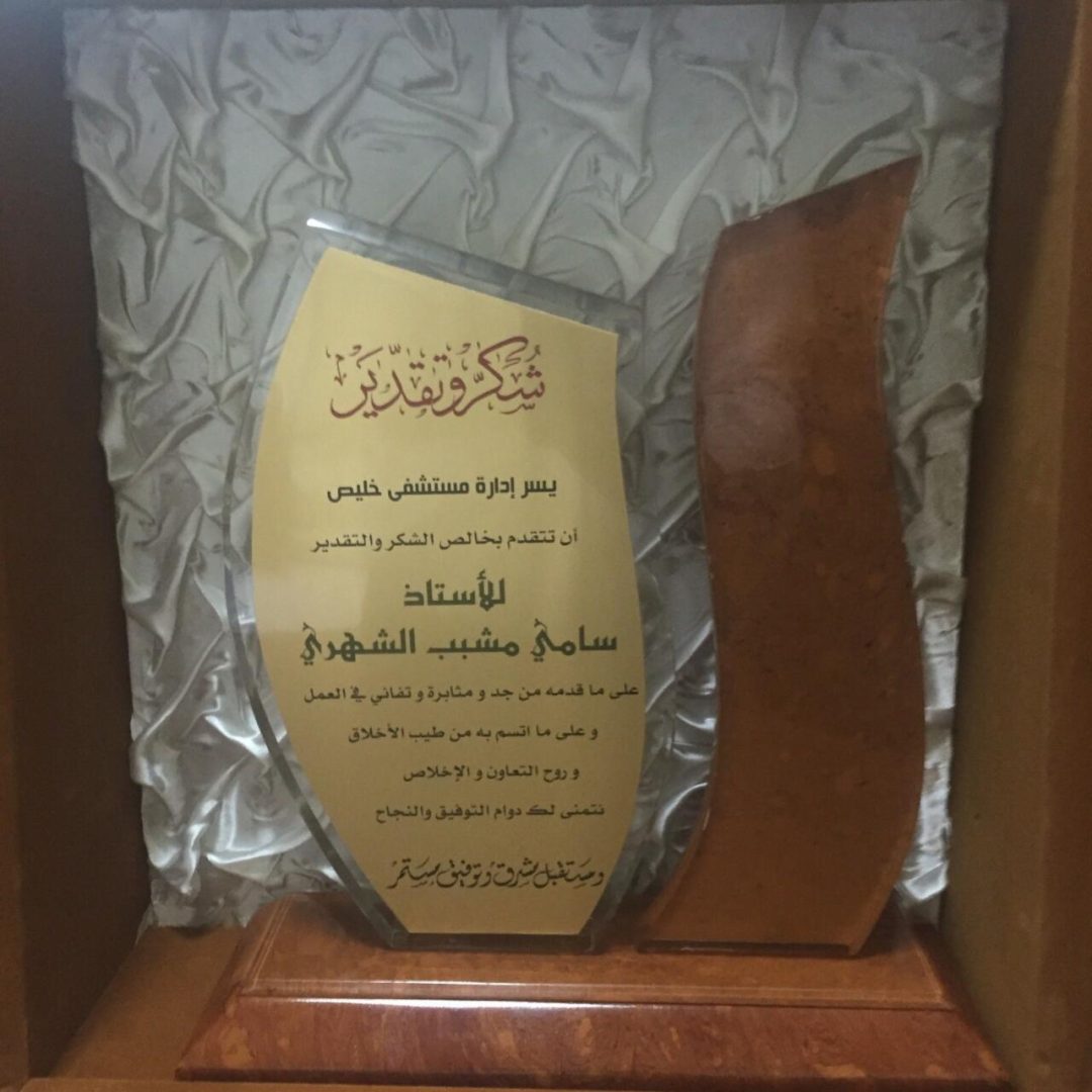 في يوم كان عنوانه الوفاء والمحبة والذي وافق يوم الأربعاء ١٤٣٧/٣/٥هـ ، أقام مستشفى خليص العام برعاية مدير المستشفى الدكتور فهد حميد الغانمي ومنسوبي المستشفى حفل تكريم للأستاذ سامي مشبب الشهري ( فني صيانة الأجهزة بالمستشفى ) بعد إنتقاله للعمل في مدينة الرياض ، وذلك لما قدمه من جد ومثابرة وتفاني في العمل ، وما أتسم به من روح التعاون و الإخلاص ، حيث يعتبر الأستاذ سامي من أوائل الموظفين في المستشفى .