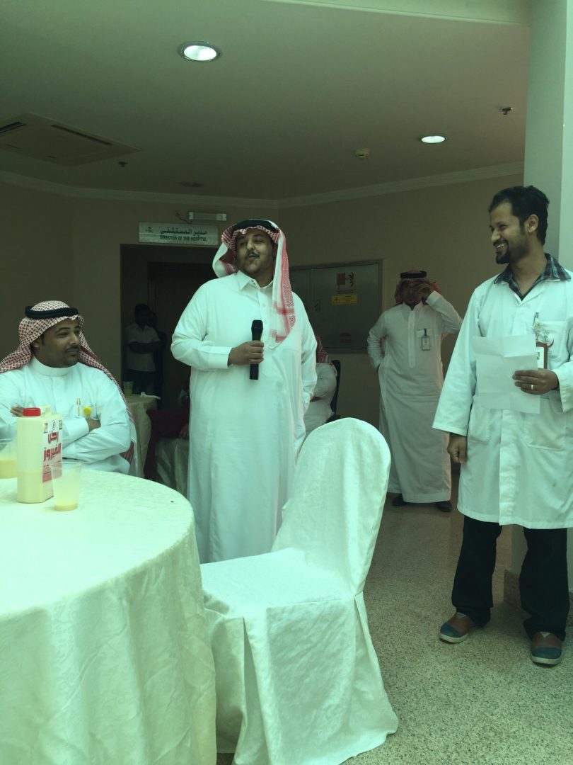 تنوعت فقرات الحفل حيث اشتملت على مقدمة للأستاذ أحمد يماني ، وآيات عطرة من الذكر الحكيم تلاها الأستاذ عبدالله الشهري ، كما ألقى مدير المستشفى الدكتور فهد الغانمي كلمة للحضور ، عقبها ألقى مدير قسم الصيانة الأستاذ فواز المغربي كلمة ، ومع ختام الحفل قدمت الهدايا وشهادة شكر ودرع تذكاري بهذه المناسبة .