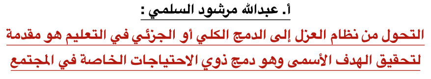 ** لقد حدثتنا عن سياسة الدمج التعليمي لفئات التربية الخاصة .. فهلّا تحدّثنا عن كيفية تحقيق سياسة دمج هذه الفئة مع المجتمع ودور المجتمع في ذلك ؟