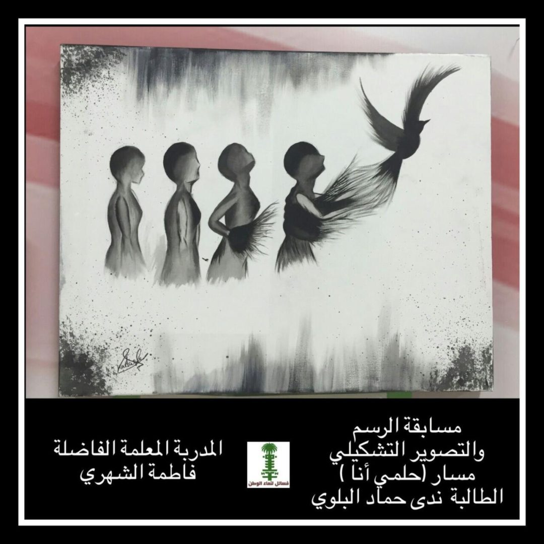 شاركت “ندى” في مسابقة الرسم والتصوير التشكيلي لمشروع التصميم الفني ، واستطاعت أن تحقق الفوز فيها على مستوى مكتب تعليم الوسط .