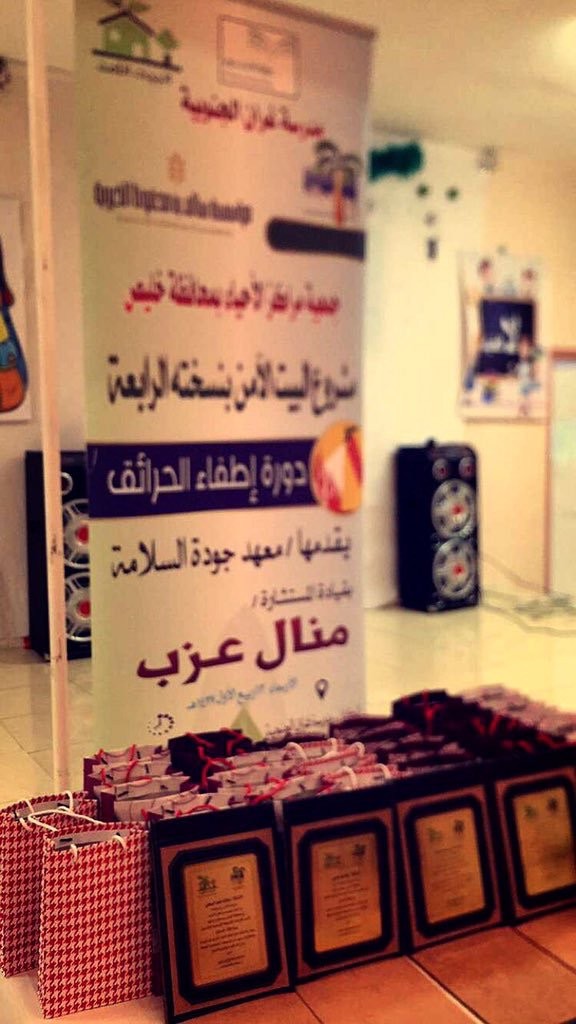 تحقيقًا للمشاركة المجتمعية وامتدادًا للبرامج والفعاليات لجمعية مراكز الأحياء بمحافظة خليص ، أُقيمت اليوم الأربعاء ١٢/ ٣/ ١٤٣٧ هـ بمدرسة غران الجنوبية دورة “إطفاء الحرائق” وبإشراف من مركز جودة السلامة الشاملة بجدة ، وقد نفّذت البرنامج المستشارة سميرة عبدالغفور بالنيابة عن الأستاذة منال عزب ، التي اعتذرت بعد الاتفاق المسبق لظرفٍ طارئ .
