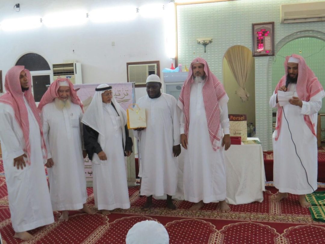 بحضور إمام المسجد الشيخ توفيق عبدالحميد المغربي ، والوالد عطاالله غنام المغربي ، كرم اليوم الإثنين الموافق 1437/4/15 هـ مدير مركز غرب خليص لتحفيظ القرآن الكريم “ترتيل” الأستاذ فيصل نافع الصبحي ، الحافظ رقم 21 بمركز غرب خليص و رقم 7 ضمن برنامج الانتساب ، الدكتور محمد عبدالعال أبو الحسن (مصري الجنسية) والذي يعمل صيدلياً بحي المغاربة ، وذلك بمناسبة ختمه القرآن الكريم ، كما كرم شيخه الشيخ محمد خليفة سعد ضمن برنامج الانتساب ، وذلك عقب صلاة العشاء بمسجد سيد الشهداء بحب المغاربة .