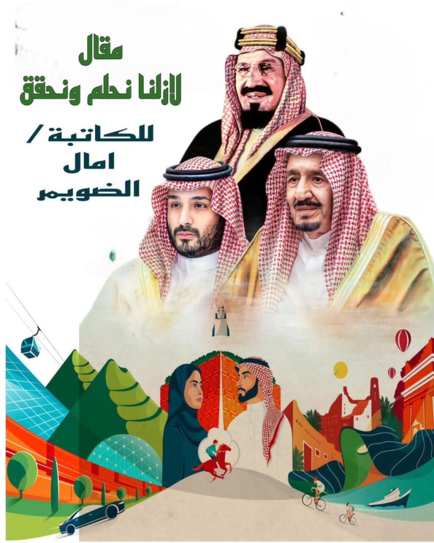 الحلم اليوم يتحقق وغدًا نستمر في حلم جديد يعيد لنا صناعة مجد وتاريخ في خطط بلادنا المستمره الطموحة لا تقف عند حد بل هي أكبر من احلام من هم حولنا سنعيد طموحاتنا التي نستمدها من منظور قيادتنا الابيه الشجاعه والداعمة لكل عطاء يخدم احلامنا ويستعيد قدراتنا المتاصلة في عمق العقول الثرية التي تأخذ القيم من اصول عميقة في اصل العقيده الداعمة للتطوير والتحقيق للاحلام فعقيدتنا تهب لنا ضياء يدعمنا للاستمرار في اقتحام معترك الجمود وتأصيل مبدأ الطموح.