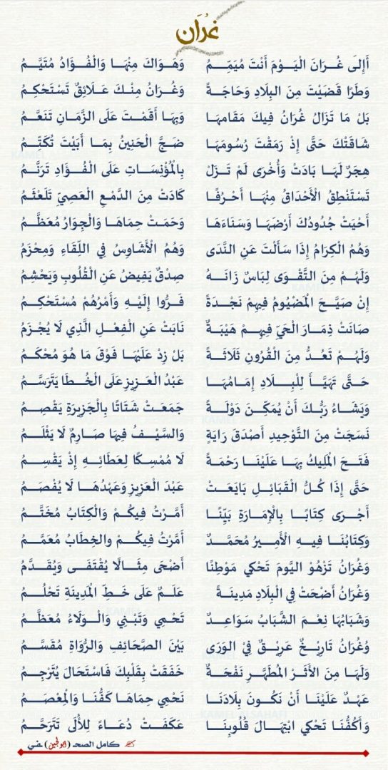 ومعلوم ان كتاب وخطاب العهد هذا من الموحد الملك عبدالعزيز رحمه الله وطيب الله ثراه من اقوى ماعهد به واعطي لمن هو في مقامه رحمه الله ولن يذهب حق خلفه من يطالب به . فوادي غران هو موطن القبيلة وهو تاريخ واسم متأصل منذ القدم في كتب التاريخ وهو حاضر ومستقبل ولعله يتهيّأ من الاسباب ما يمكن من تحقيق ما نأمله ونصبوا اليه