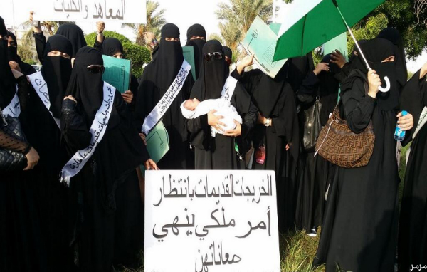 ناشدت عدد من الجامعيات القديمات الملك بالنظر إلى ملفهن وإنهاء معاناتهنّ الطويلة مع البطالة، عبر توظيفهنّ العاجل ومساواتهنّ بغيرهنّ من خريجات الكليات والمعاهد، من خلال التقائهن أمام قصر الملك في جدة، حيث تناولن طعام الإفطار أمامه. وقالت نوره العتيبي المتحدثة باسم الخريجات القديمات وفقا لـ”عين اليوم”: “أناشد ملك الإنسانية وغيث الوطن أن يتكرم علينا بالتوظيف الفوري، أسوة بغيرنا من خريجات الكليات والمعاهد”. وكانت الخريجات قد تجمعنّ في وقت مبكر من ظهر اليوم الرابع من رمضان وتناولنّ الإفطار أمام قصر الملك بجدة/ في سبيل الإلتقاء بالملك أو أحد المسؤولين لعرض مشكلتهن عليه أملاً في حلها.