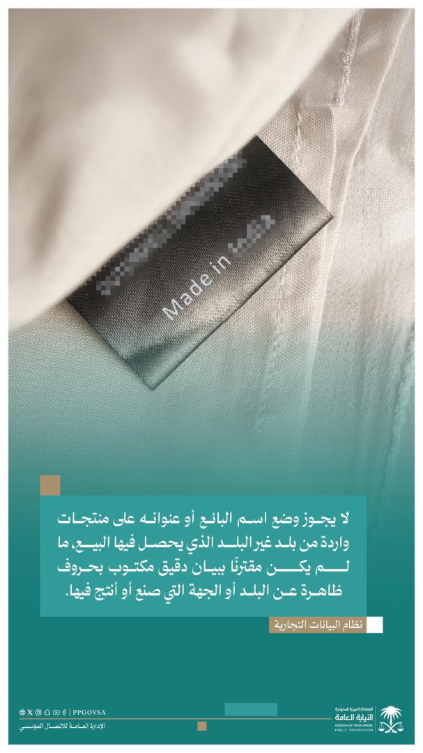 وجاء هذا التحذير في إطار حرص النيابة العامة على حماية حقوق المستهلكين وضمان شفافية المعلومات المتعلقة بالمنتجات، ومنع أي تضليل قد يطرأ عند شراء السلع المستوردة. وأوضحت النيابة أن الالتزام بهذه التعليمات يسهم في تعزيز الثقة بين البائعين والمستهلكين وضمان سلامة التعاملات التجارية داخل المملكة.