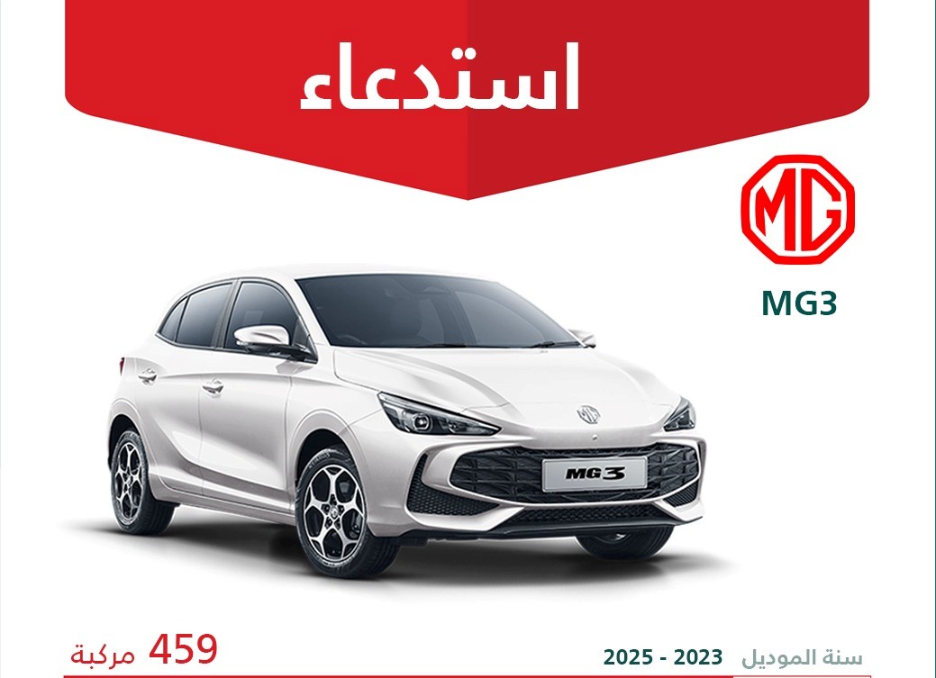 أعلنت وزار التجارة، اليوم الثلاثاء، عن استدعاء 459 مركبة من طراز MG3 ام جي، موديلات 2023 – 2025، وذلك بسبب خلل في آلية تثبيت مقعد السائق.
