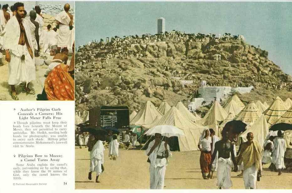 صحيفة غراس الالكترونية > متفرقات > صور نادرة عن الحج عام 1953م صور نادرة عن الحج عام 1953م الكاتب: مجلة ناشيونال جغرافيك 20 يوليو, 2014م 1 48208 صور ملونة وجميلة لحج عام 1953 م ، يعني لها حوالي 60 سنة لمصور باكستاني يدرس في جامعة بأمريكا ، والجامعة أعطته كاميرا لتصوير الحج ، من كان هناك الآن أصبح تحت التراب أو في المشيب ، صور مؤثرة تدمع لها العين من الماضي الجميل . باب الدخول إلى الحرم المكي المباني المحيطة بالحرم المكي الكعبة المشرفة وعليها كسوة هدية من مصر وقت الصلاة في الحرم صحن الحرم الصلاة في الحرم وقت الزحام والمصلون وصلوا لأبواب الحرم باب الكعبة ويبدو أنه كان مفتوحاً أمام زوار الحرم رمي الجمرات الحجاج يشترون الهدي والأضاحي وفي وسطهم يبدو المصور شخصياً صورة أخرى لسوق الأضاحي حاج يحلق رأسه وفي الصورة الأخرى رجل يقوم بنقل الزبائح لتوزيعها على الفقراء جبل الرحمة الدخول للمسعى من باب بجوار المنارة على اليسار زيارة للمدينة المنورة وفي الصورة قبر النبي صلى الله عليه وسلم