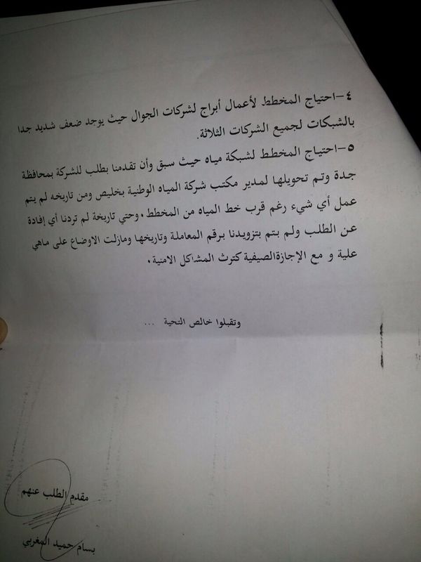 تقدم أهالي مخطط جنوب السلام بطلب لسعادة محافظ محافظة خليص يطالبون فيه بتوفير بعض الخدمات التي يحتاج إليها المخطط مثل أعمال النظافة العامة وأعمال الإنارة ، كما أعلنوا عن حاجاتهم لجولات الدوريات الأمنية وجولات هيئة الأمر بالمعروف والنهي عن المنكر ، كما أكدوا على ضرورة توفير أبراج لشركات الجوال وتوفير شبكة مياة.