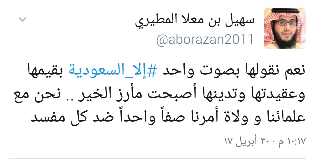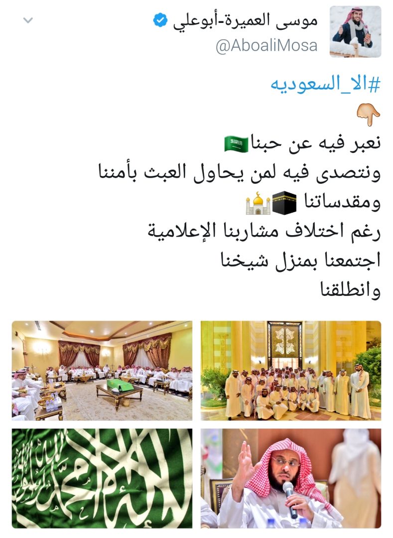 صحيفة غراس الإلكترونية > متفرقات > الشيخ عائض القرني يطلق مبادرة وطنية تحت شعار “إلا السعودية” الشيخ عائض القرني يطلق مبادرة وطنية تحت شعار “إلا السعودية” الكاتب: صحيفة غران - متابعات 01 مايو, 2017م 0 4955 أطلق الدكتور الشيخ “عائض القرني” يوم أمس الأحد الموافق ١٤٣٨/٨/٤ مبادرة وطنية عبر تويتر بهاشتاق #إلا_السعودية حيث استضاف في منزله العامر “٤٠” من نخبة وكوكبة الإعلاميين السعوديين . كما استهل الشيخ في بداية حديثه بتوجيه التحية لأبطال الحد الجنوبي الذين يدافعون عن الوطن بكل جسالة . وأهدى قصيدته التي كانت هي عنوان المبادرة “إلا السعودية ” وألقاها في مجلسه تعبيراً عن حبه ودفاعه للوطن . وفي أثناء هذا اللقاء اتفقوا على : – اختيار الإعلامي الأستاذ “عبدالله الشهري“ أميناً عاماً لمبادرة “إلا السعودية” للبدء في أعمال اللجان وفروع المبادرة. - والأستاذ “علي الحازمي” نائباً للأمين العام لمبادرة ” إلا السعودية ” . – تم تدوين أهم الأفكار التي تكون بحول الله واقعاً ملموساً. حيث قدم الدكتور شكره الخاص للإعلامي ”عبدالرحمن البشري“ الناطق الإعلامي بإسم مبادرة “إلا السعودية” على روحه الإسلامية الوطنية الرائدة . الجدير بالذكر أن هذه المبادرة حظيت بقبول شعبي كبير وفاقت التوقعات ولاقت حضوراً ملفتاً في مواقع التواصل بالرغم من أنها في بداياتها ولم تعلن عن برامجها. حيث كانت نتائج إطلاق الهاشتاق له الأثر الكبير على المغردين الذين عبروا عن حبهم للوطن ودفاعهم عن المملكة ضد أي عدوان خارجي أو داخلي وضد كل مفسد يريد تشتيت الأزر . كما أن التغريدات اشتملت على أن مبادرة “إلا السعودية” يجب أن يمتثله الشعب في جميع أقواله وأفعاله بحب وإخلاص للوطن . وقد شارك وأشاد عن هذه المبادرة وشجع مجموعة من رموز الإعلام والشيوخ من دول الخليج منهم الشيخ “حسن الحسيني” حيث قال { أبناء السعودية يطلقون مبادرةً في وجه خصومها ” إلا السعودية ” وأقول لهم حتى أهل البحرين يصدحون معكم إلا السعودية } وقد اختتم القرني هذه الليلة بقوله : أن مبادرة إلا السعودية انتهت بأن السعودية غنية عن التعريف حيث أنها مهبط الوحي وقبلة المسلمين ومنارة الهدى وأرض محمد صلى الله عليه وسلم والخلفاء الراشدين . وماهي إلا تثقيف للأمة جميعاً بمكانة هذا البلد ورد الحملات الآثمة التي هي ضد ديننا ورسالتنا ووطننا . والمقصود هو جمع الشمل وتوحيد الصف والكلمة وتأليف القلوب والرد على أعداء الملة والوطن . كما أنه مشروع علمي دعوي ثقافي رياضي ، سينطلق بإذن الله مع نجوم من الإعلاميين عما قريب .