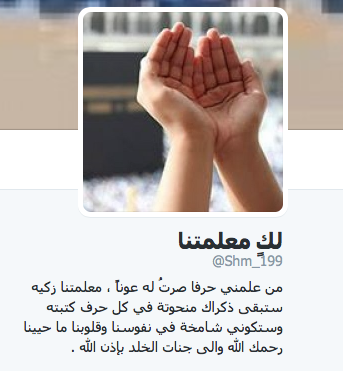 عرفانا بالجميل وتخليداً لذكرى معلمتهن الرائعه التي جمعت بين الرقي في التعامل والقلب العطوف بين اللين والشدة بين الحزم والحنان ، قام مجموعة من طالبات متوسطة وثانوية أم الجرم بإنشاء حساب على موقع التواصل الاجتماعي (تويتر) كصدقة جارية للفقيدة الغالية ينشرن من خلاله تغريدات تذكر بالله وتدعو إليه وتحث على الأخلاق الحميدة والأعمال الصالحة وكل مايقرب إلى الله والدار الآخرة سائلات الله عز وجل أن يجري عليها هذا العمل أجوراً تصب في ميزان حسناتها.