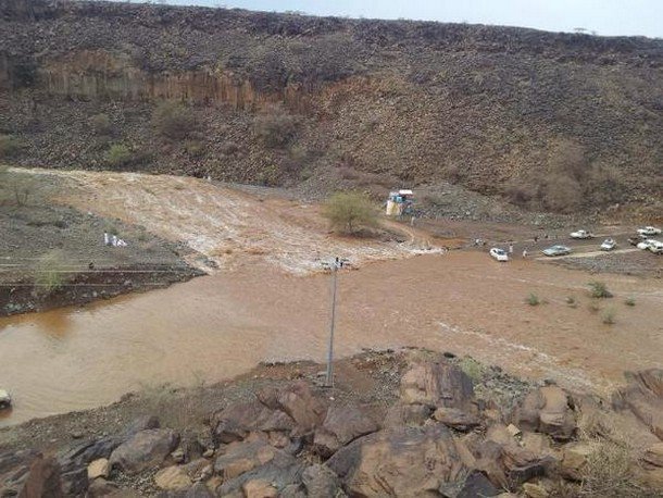 وبدأ هطول الأمطار في الواحدة ظهراً واستمر على فترات سالت بسببها أودية مثل وادي ضرعا ووادي النظيم ووادي شباريق.