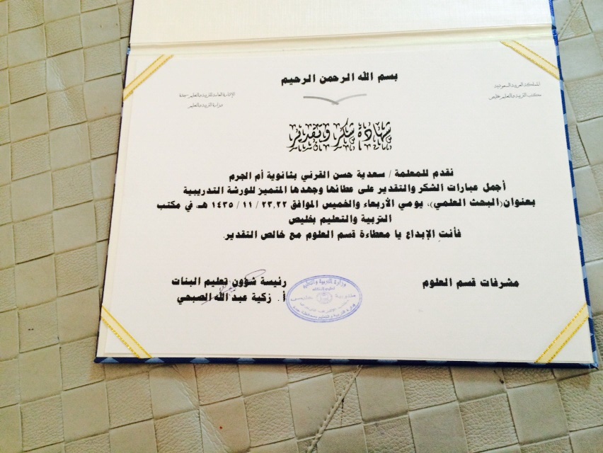 في أطار الشراكة المجتمعية بين صحيفة غران الإلكترونية ومكتب التربية والتعليم بخليص أقام قسم العلوم بمكتب التربية والتعليم بخليص يومي الأربعاء والخميس 22و11/23/ 1435هـ برنامج تدريبي بعنوان (منهجية البحث العلمي) .. حيث عقد في مقر المكتب بقيادة المدربة /سعدية القرني، معلمة احياء في ثانوية ام الجرم بأشراف مشرفه قسم العلوم بمكتب التربية والتعليم الأستاذة /سميرة الصاعدي في ظل رعاية رئيسة شؤون تعليم البنات الأستاذة / زكية الصبحي وقد شارك في البرنامج ثمان طالبات (من الصف الأول الثانوي والصف الثاني علمي) وإحدى عشرة معلمة (أحياء وكيمياء وفيزياء ) وثلاث مشرفات ( أحياء وكيمياء وفيزياء ).