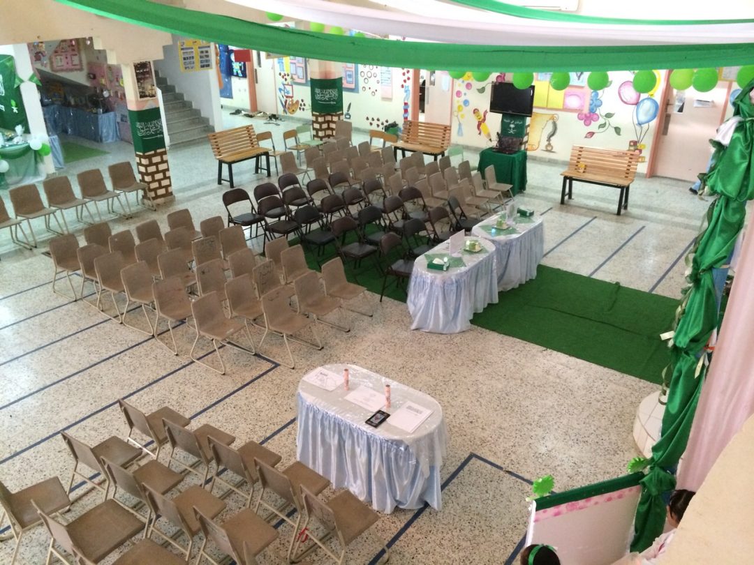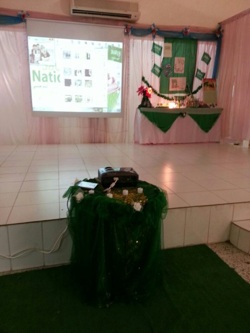 وذلك بحضور المشرفة التربوية بمكتب التربية والتعليم بمحافظة خليص الأستاذة : هالة الهاشمي . والتي أبدت سرورها وإعجابها بما شاهدته . سواء أكانت فقرات البرنامج المنفذة على مسرح المدرسة . أو بما شاهدته داخل ساحة المدرسة وممرات العبور من معروضات وطنية مختلفة . بزينها الفنية الجميلة وبأشكالها العديدة . مقدمة شكرها الجزيل لمديرة المدرسة الأستاذة : آمال الشيخ . وللمعلمات القديرات . وللطالبات العزيزات على جميع الجهود المبذولة .التي بذلت لإخراج هذا البرنامج بهذا التميز والجمال المشرف… متمنية للجميع التوفيق والسداد …