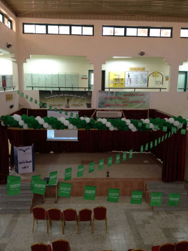 صحيفة غراس الالكترونية > التربية والتعليم > متوسطة وثانوية أم الجرم تحتفلان باليوم الوطني 84 متوسطة وثانوية أم الجرم تحتفلان باليوم الوطني 84 الكاتب: ليلى الشيخ 20 سبتمبر, 2014م 2 13690 أقيم في يوم الخميس الموافق 23 من ذو القعدة من عام 1435 للهجرة , إحتفالا بهيجا باليوم الوطني السعودي 84 ،نظمته مجموعة متميزة من الطالبات بمشاركة معلماتهن وعلى رأسهن رائدة النشاط الطلابي المعلمة /بسمة الشيخ، ، وقد تشرفت الحفل بضيافة المشرفة الاستاذة/نويفعة الصحفي التي سجلت إعجابها بزاوية النشاط الطلابي وفقرات الحفل.. . حيث بدء الحفل بأيات من الذكر الحكيم بصوت أحد الطالبات،كما وقف الجميع إحتراما لأداء النشيد الوطني ، بعد ذلك وقفت القأئدة التربوية الاستاذة/مريم نافع الشيخ مديرة متوسطة وثانوية ام الجرم لإلقاء كلمة عبرت فيها عن مفهوم الوطنية وواجبنا جميعا نحو الوطن ، أيضا تقدمت عضو المجلس الاستشاري بإدارة التربية والتعليم بجدة الأستاذة جوهرة صالح الصحفي وهي أحد المعلمات في متوسطة ام الجرم بكلمة حفزت العقول على إستشعار الوطنية ومن هو الوطن وكيف يكون الوطن وأقرنت ذلك بألعاب خفيفة أستنتجت من خلالها مافي جعبة الحضور الكثير من القيم السامية التي بواسطتها نستطيع التمتع بالوطنية الصادقة .تلى ذلك مشهد تمثيلي من أداء الطالبتين حنان زكي وشهد عبد الحفيظ وشهد مهنا عبارة عن حوار رأئعا بين فتاة وجدتها وقد حمل في طياته ما يحكي عن نعمة الحاضر وحياة الماضي المريرة مما زرع في نفوس الطالبات قيمة شكر النعم ، ايضا أشتمل الحفل على أنشودة وصفها الحاضرون بالرائعه ، من تأدية الطالبة وئام الصحفي،ايضا فاجأت الجميع المرشدة الطلابية المعلمة/مريم المصباحي ،بظهورها على المسرح المدرسي متنكرة في شخصية الحكواتي بزي قد أوحى للحضور بالزمن الماضي وروعه الجدات.. حيث سردت على الخضور قصة الحكواتي وكيف كانت المحتمعات قديما تخلو المجتمع من الوسائل الاعلامية ثقافية او ترفيهية وختمت ذلك بتطور الحاظر حيث حلت دور السينما محل الحكواتي ثقافيا وترفيها وأشارت بيدها للدور العلوي حيث القاعة العلوية ودعت الحاضرات اإلى زيارة دار السينما حيث أختتم الحفل بإستقبال زائرات دار العرض السنمائي ، التي كانت من فكرة الطالبات مرام غازي ، وشذا مهنا، وأمل عبد الرحمن حيث قمن بإعداد قاعة الاجتماعيات لتصبح دار سينما حقيقية لتعرض بها فيلم وثائقي عن توحيد المملكة حيث وزعت تذاكر مجانية بشكل عشوائي لمن يحالفها الحظ العرض سواء من الطالبات والمعلمات والطاقم الإداري .. كما تفضلن مشكورات بواجب الضيافة داخل دار العرض السينمائي .. مما أشعر الحضور بما لو كانو في دار سينما حقيقية.