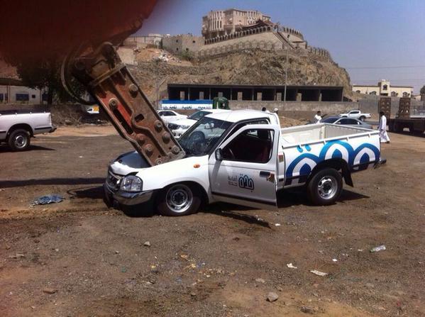 تلاحق الجهات الأمنية في جدة مواطناً اعتدى على سيارة رسمية تابعة لأمانة محافظة جدة، وأعطب مقدمتها بمعدة ثقيلة “بوكلين” إثر محاولة مراقب بلدية أم السلم منعه من الاعتداء على أرض بيضاء تعود ملكيتها للدولة. وأوضح الناطق الإعلامي بأمانة محافظة جدة محمد البقمي أنه في تمام الساعة الحادية عشرة من صباح اليوم الأربعاء، وخلال الجولات الدورية لمراقبي أمانة محافظة جدة، باشرت إحدى الفرق التابعة لبلدية أم السلم الفرعية موقعاً مخالفاً بمنطقة الحرازات، حيث رصدوا معدة تعمل على تسوية أرض فضاء. وبين أنه بعد إيقاف مراقبي أمانة جدة للمعدات بسبب عملها في منطقة تعديات، ترجل العامل من “البوكلين”، وصعد إليها أحد المواطنين، وهدد مراقبي الأمانة، واستخدم البوكلين في إتلاف سيارة الأمانة، وبعدها استعان مراقبو أمانة جدة برجال الأمن، وقُبيل حضورهم هرب المعتدي من موقع الحادثة. وأشار البقمي إلى أنه تم تسجيل محضر بالواقعة، وجار متابعة اللازم من قبل الجهات الرسمية. وكان مغردون قد تداولوا على مواقع التواصل الاجتماعي “تويتر” مقطع فيديو وصوراً لاعتداء مواطن بمعدة ثقيلة على سيارة تابعة لبلدية أم السلم بجدة، وذلك أثناء متابعتها لأحد الأعمال بحي الحرازات، حيث حطم مقدمة السيارة، مما اضطر موظفي البلدية للنزول من المركبة، وطلبهم من الجهات الأمنية الحضور للموقع.