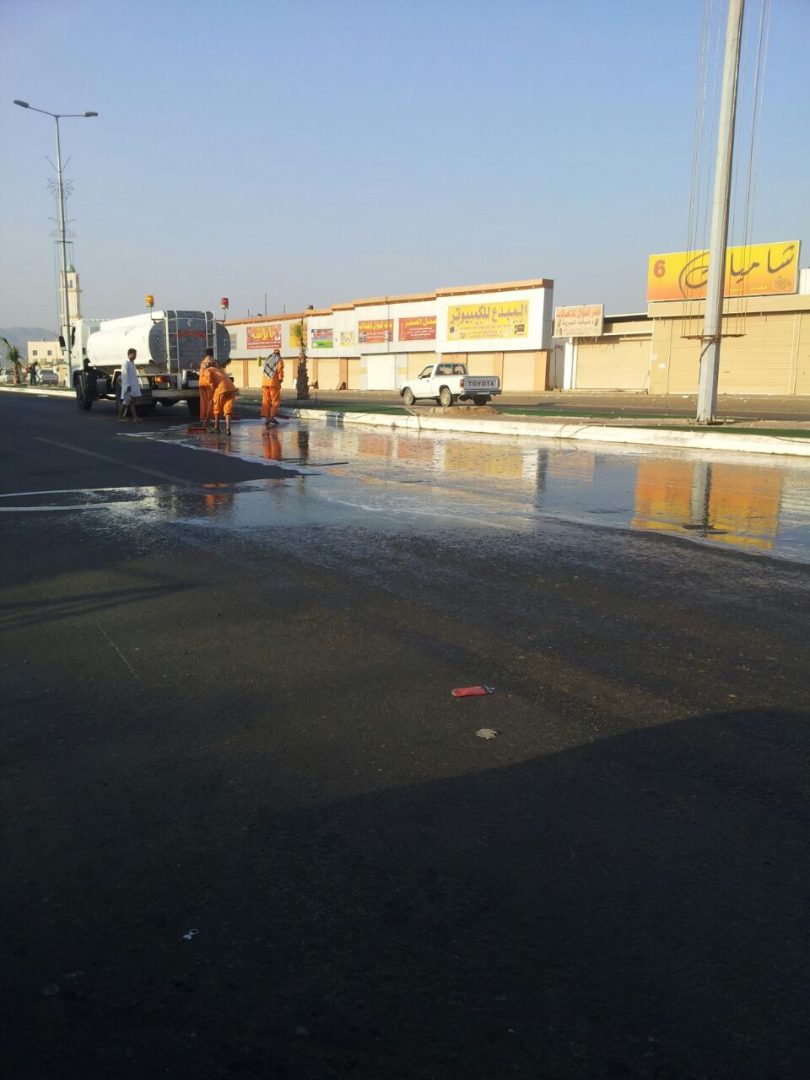 في إنجاز جديد لبلدية عسفان ألزمت المقاولين والشركات المنفذة للأعمال في عسفان باعادة وضعية الشوارع كما استلمتها قبل تنفيذ البدء في المشروع أو إيصال الخدمة لمشتركي الكهرباء أو الاتصالات أو المياة . بل أنها طالبتهم بغسيل الشوارع بالماء والصابون بعد انتهاء أي عمل وهذا ما تم فعله والصور التالية توضي قيام أحد المقاولين بغسل الشارع.